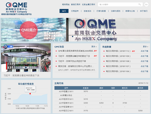 前海聯(lián)合交易中心為香港交易及結(jié)算所有限公司(香港交易所)在中國內(nèi)地設(shè)立的大宗商品交易平臺,以氧化鋁現(xiàn)貨為首個(gè)交易品種。自10月19日上線交易以來,QME根據(jù)國內(nèi)鋁產(chǎn)業(yè)布局和市場需求共推出17個(gè)細(xì)分氧化鋁現(xiàn)貨品種,其中AO中鋁交口1810、AO中鋁焦作1810、AO中鋁鄭州1810和AO中鋁遵義1810為首月的主要成交品種。
