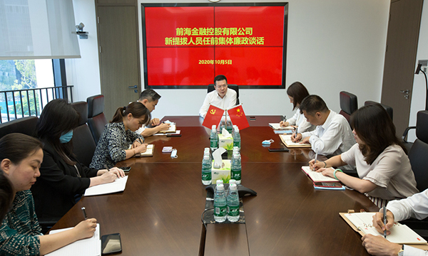 10月5日,前海金控召開新提拔人員集體廉政談話會,公司黨委副書記、總經(jīng)理李劍峰同志對近期提拔的15名同志進(jìn)行了集體廉政談話。