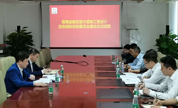 3月17日下午,前海廉政監(jiān)督局預(yù)防腐敗處副處長林勁民一行在前海金融總部大廈招標(biāo)項(xiàng)目定標(biāo)現(xiàn)場,對項(xiàng)目定標(biāo)委員會成員開展廉政談話提醒。