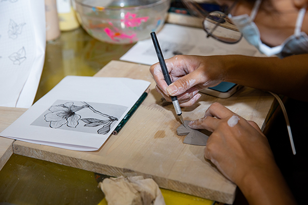 活動中,大家在陶藝老師的指導(dǎo)下“大展身手”,用手中的陶泥和工具,揉泥、塑型、上色,松軟的陶泥在大家靈巧的雙手中變換成千姿百態(tài)的勒杜鵑、紫荊花,在小小一塊陶泥中寄托了大家對深港融合美好未來的真摯祝愿。