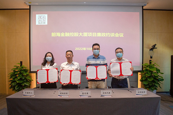 會(huì)上,參建單位代表圍繞如何加強(qiáng)建設(shè)項(xiàng)目黨風(fēng)廉政建設(shè)工作進(jìn)行了深入交流。前海金控公司與中建科工、金地集團(tuán)、合創(chuàng)公司聯(lián)合簽署了《廉潔共建合作備忘錄》,作為各方共同遵守的廉潔合作行為準(zhǔn)則。