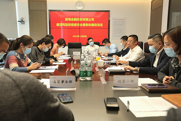為進(jìn)一步夯實(shí)黨風(fēng)廉政建設(shè)主體責(zé)任,規(guī)范權(quán)力運(yùn)行監(jiān)督,有效防范廉潔風(fēng)險(xiǎn),近日,前海金控公司紀(jì)委書記、監(jiān)事會(huì)主席王耘組織召開公司廉潔風(fēng)險(xiǎn)排查座談會(huì)暨集體廉政談話,各部門負(fù)責(zé)人參加會(huì)議。