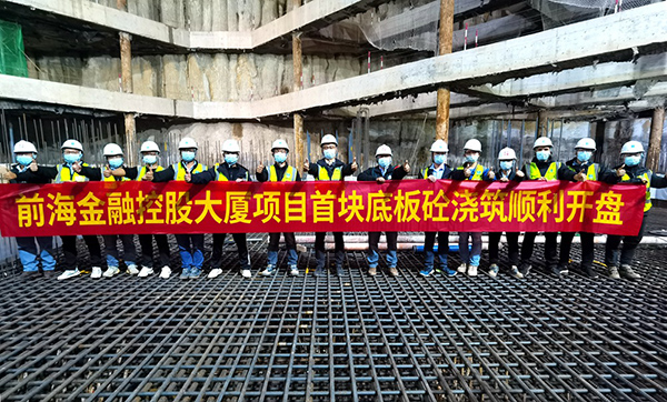 近日,伴隨著最后1方混凝土從泵管中噴出,前海金融控股大廈項目順利完成首塊底板澆筑。