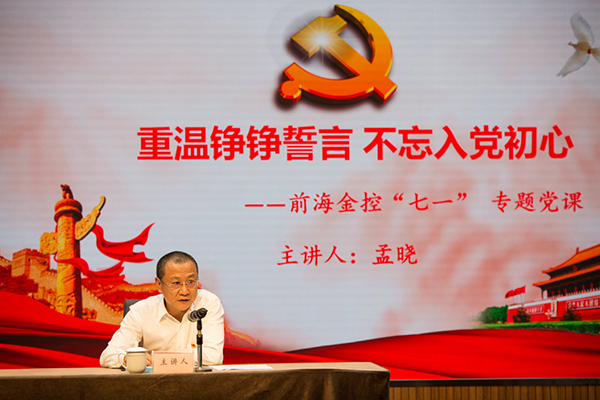 公司黨委書記、董事長孟曉以《重溫錚錚誓言 不忘入黨初心》為題講授專題黨課,從中國共產(chǎn)黨人的“初心”出發(fā),認真回顧入黨誓詞的歷史淵源和豐富內涵,詳細解讀入黨誓詞對黨員提出的根本要求,勉勵黨員干部不忘入黨誓詞、發(fā)揚前海精神,以實際行動履行光榮使命,開創(chuàng)前海金融創(chuàng)新工作新局面,為公司業(yè)務持續(xù)發(fā)展做出應有貢獻。