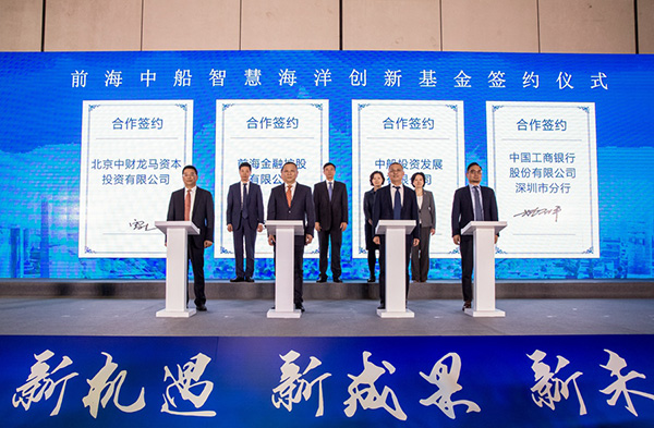 12月7日,“新機(jī)遇•新成果•新未來(lái)——2019前海成果發(fā)布會(huì)”在前海深港合作區(qū)舉辦。發(fā)布會(huì)上,前海金融控股有限公司(以下簡(jiǎn)稱(chēng)“前海金控”)與中船投資發(fā)展有限公司、北京中財(cái)龍馬資本投資有限公司、中國(guó)工商銀行股份有限公司深圳市分行簽署合作協(xié)議,共同發(fā)起設(shè)立前海中船智慧海洋創(chuàng)新基金。